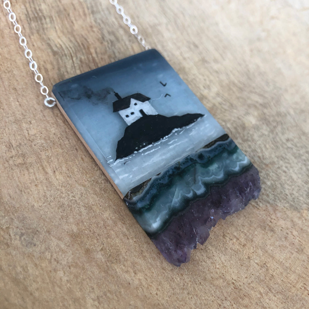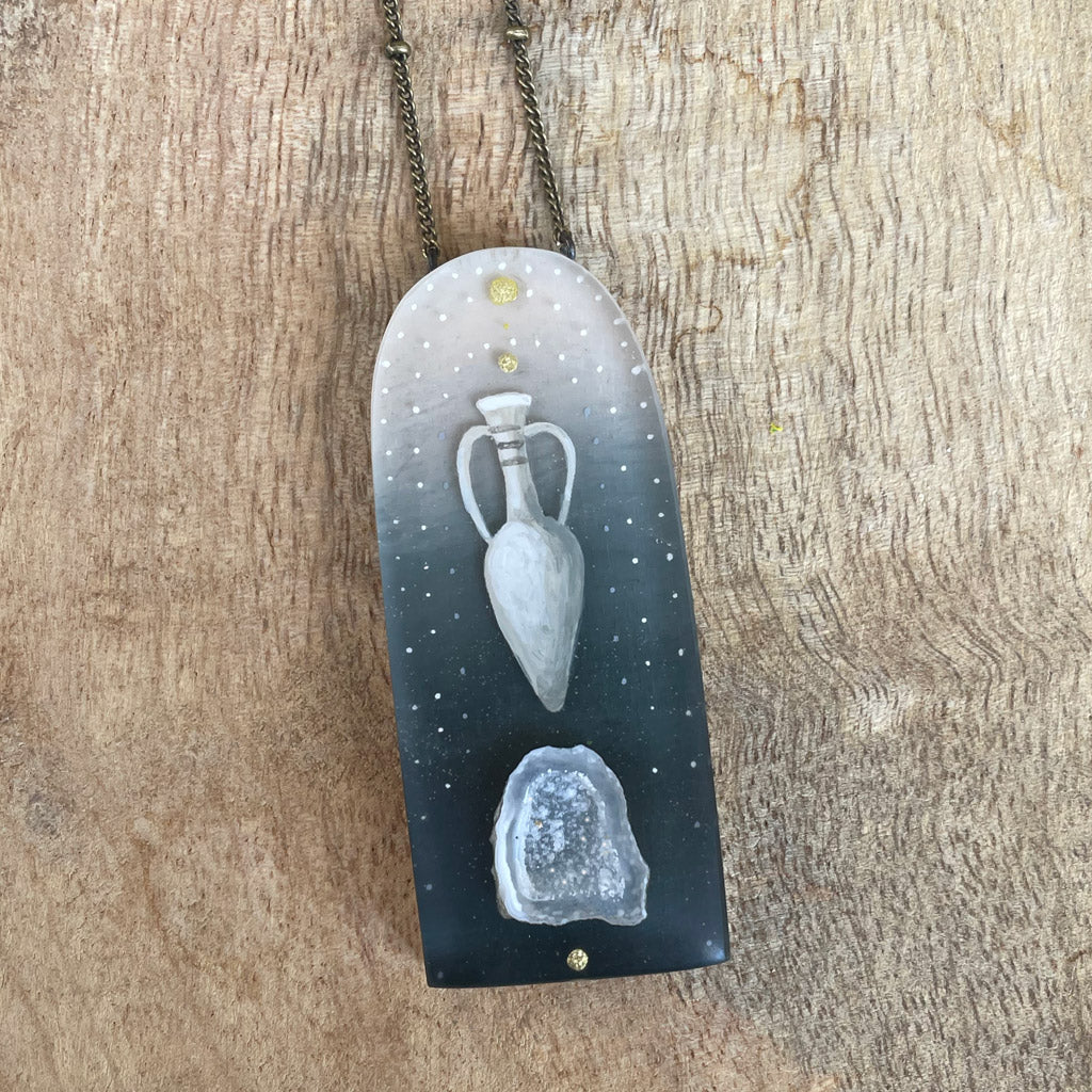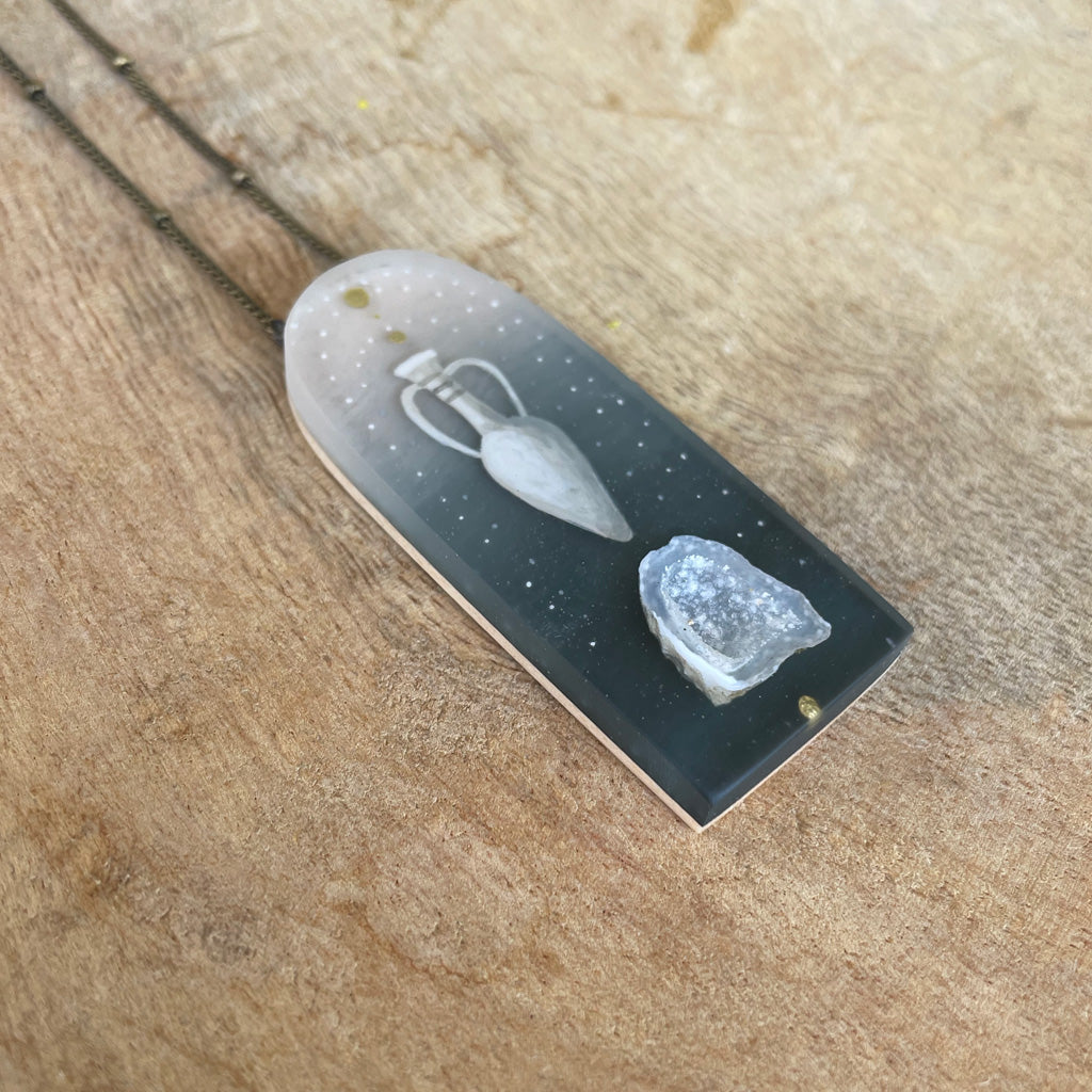 Fernworks is a one-woman studio creating delicate, dreamlike art and jewelry which blends hand painted scenes & real ethically sourced specimens into dimensional layers of polished resin. Each piece is handmade and inspired by the natural world.
