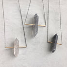 Each piece varies slightly in color tone and size with points ranging from about 1.5" to 2" tall. Strung on 25" gunmetal chains with lobster claw style gold tone clasps. Length can be shortened if needed.