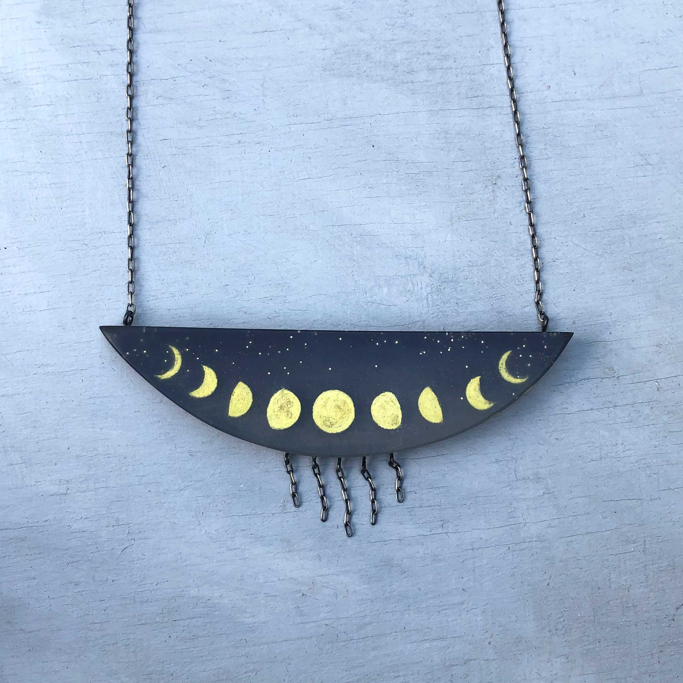 Hand painted golden moons layered in polished resin with a subtle 3-D effect.