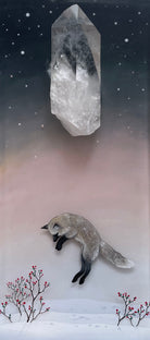 A winter scene hand painted and layered in polished resin with a quartz crystal partially embedded.