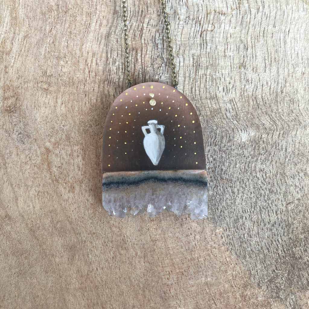 Hand painted and layered in dimensional polished resin with a slice of amethyst + jasper attached.